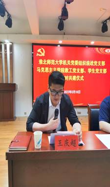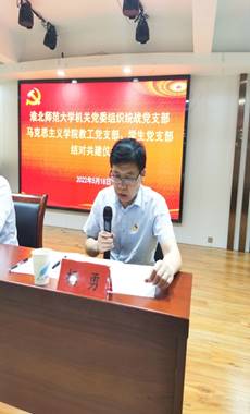 马伟表示,开展党支部结对共建活动,旨在深入推进服务型机关党支部建设,搭建机关党员干部直接联系服务师生的平台,促进机关党员干部进一步转变工作作风、提高管理服务水平。结对共建后,组织统战党支部将本着“共建共融,共同发展”的原则,与马院师生党支部共过组织生活、共促队伍建设、共享党建资源、共解师生急难、共推事业发展。组织统战党支部将充分发挥自身优势,积极主动在学院基层党建、党组织建设、党员发展、党务工作者学习培训等方面提供帮助,推动学院党建工作规范化标准化。